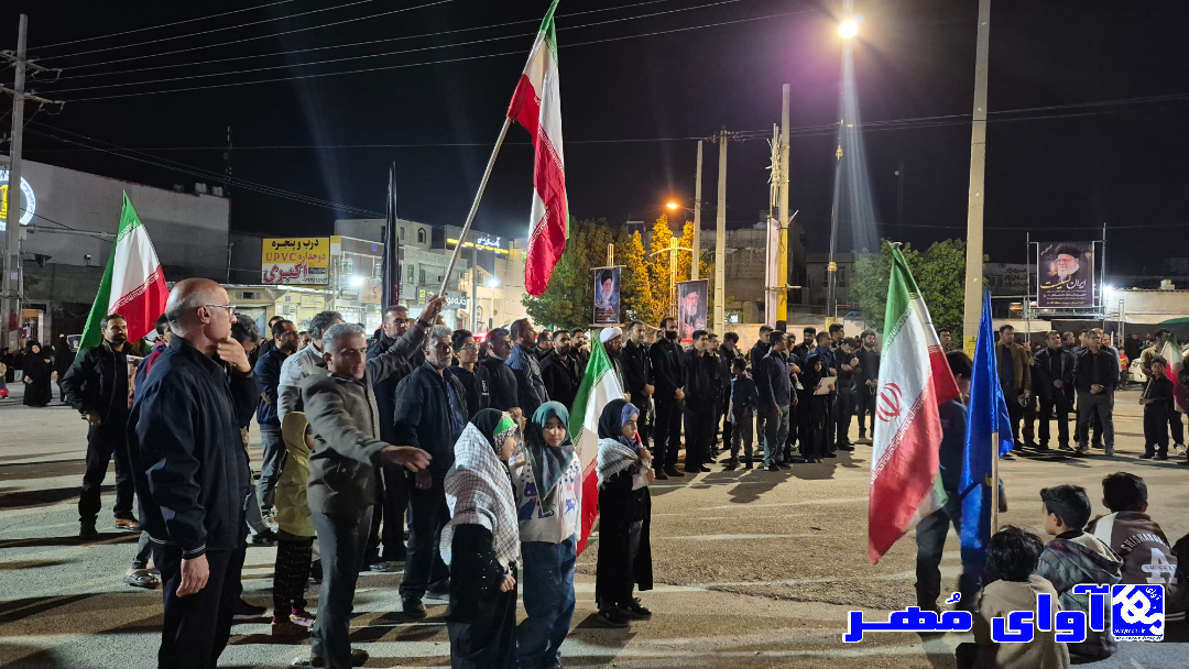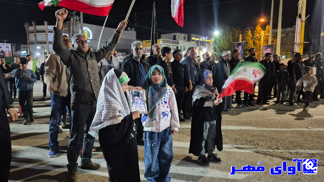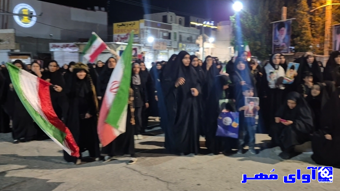 مردم ولایتمدار شهر گله دار شهرستان مهر در شب هشتم همچنان در میدان حر دارند و حمایت خود را از نطام و انقلاب اعلام میکنند.