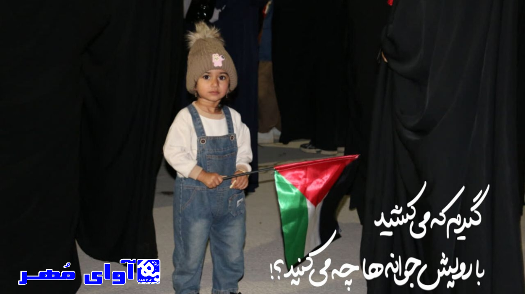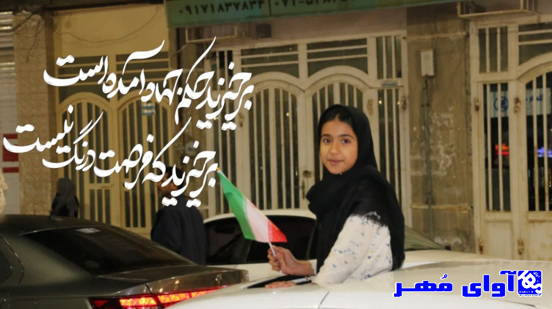 • عکس نوشته هایی از خبرنگار آوای مُهر بر روی تصاویر حضور مردم ولایتمدار شهر مهر عکاس؛ زینب مزارعی