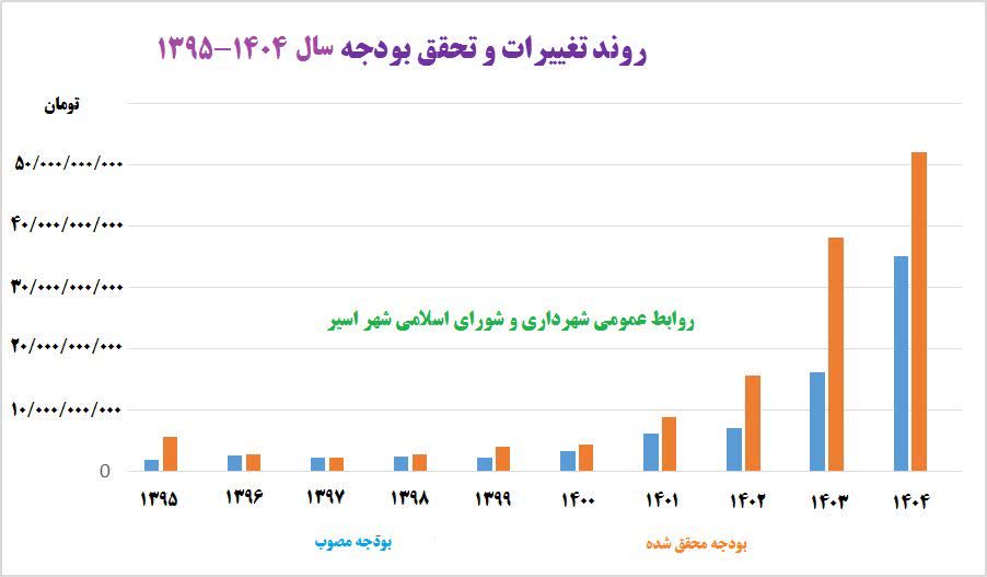 به گزارش آوای مُهر و به نقل از روابط عمومی شهرداری و شورای اسلامی شهر اسیر، جعفر همتی شهردار اسیر می گوید: درآمدهای شهرداری اسیر در بودجه سال ۱۴۰۴ مبلغ ۳۵۰/۰۰۰/۰۰۰/۰۰۰ ریال پیش بینی شده بوده که با تلاش های انجام شده، درآمدهای شهرداری با مبلغ تقریبی ۵۲۰/۰۰۰/۰۰۰/۰۰۰ ریال محقق شد.