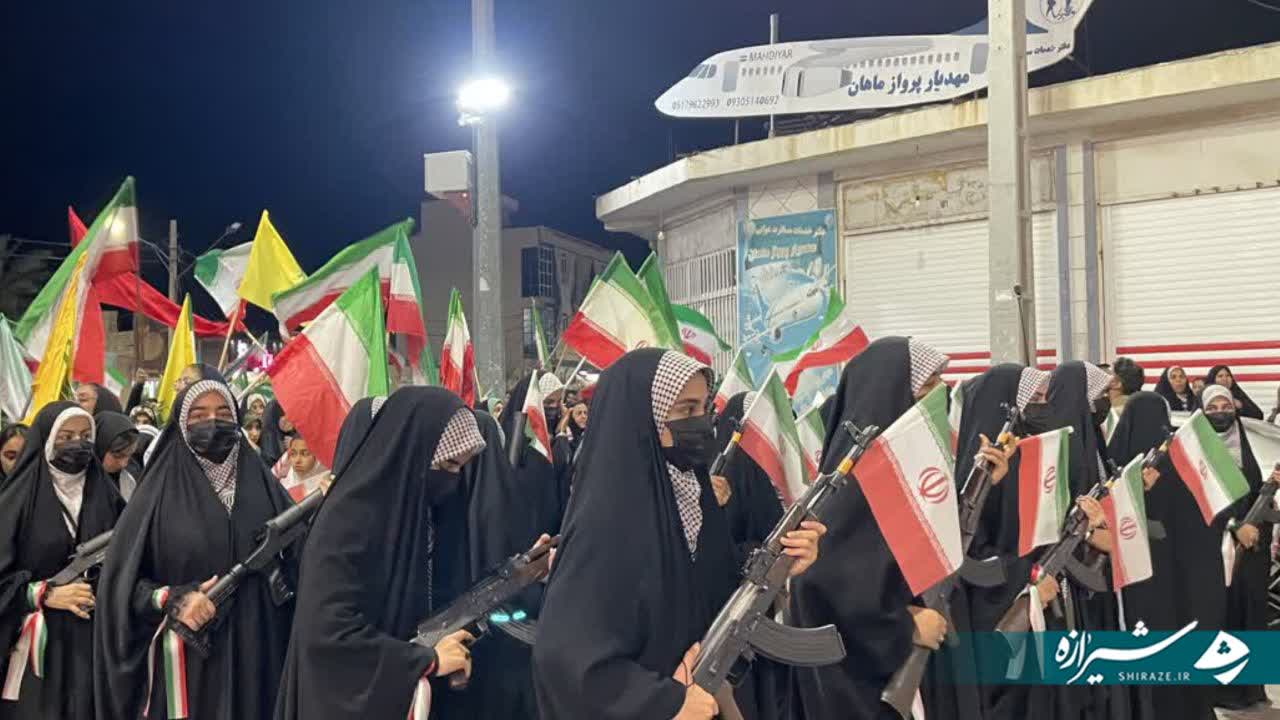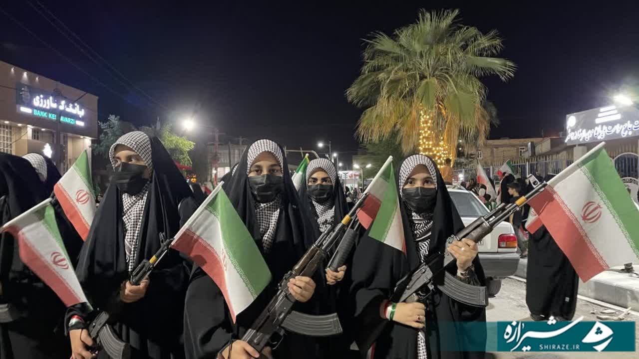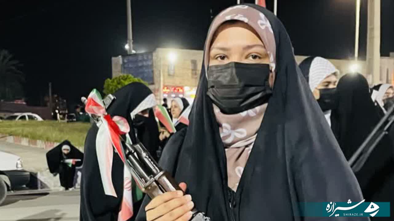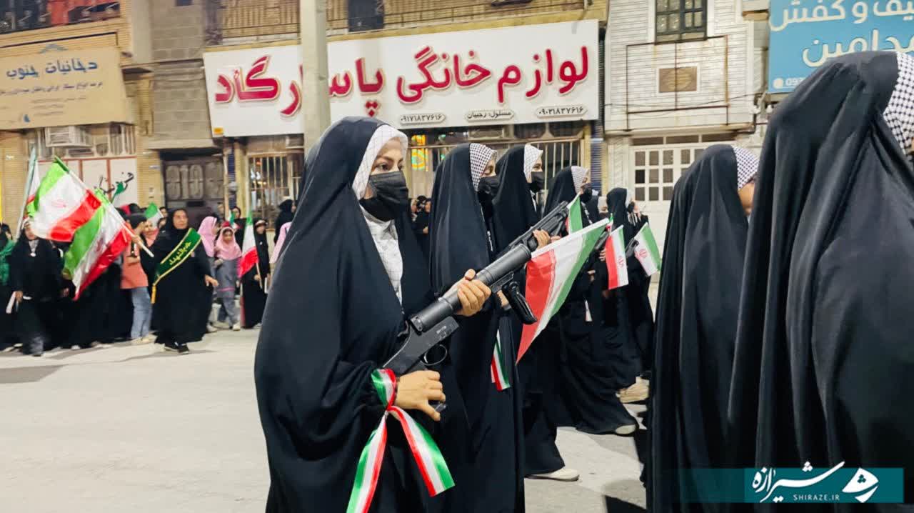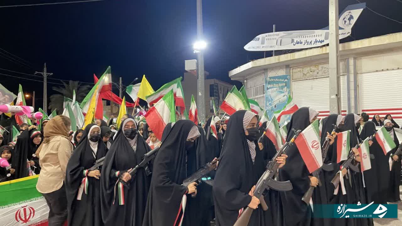 در این مراسم، دختران با سلاحهای نمادین و دانشآموزان با لباس مدرسه، ضمن ادای احترام به مقام شامخ شهدا، به ویژه شهدای میناب، همبستگی و آمادگی خود را با آرمانهای انقلاب اسلامی و ارزشهای دفاع مقدس به نمایش گذاشتند.